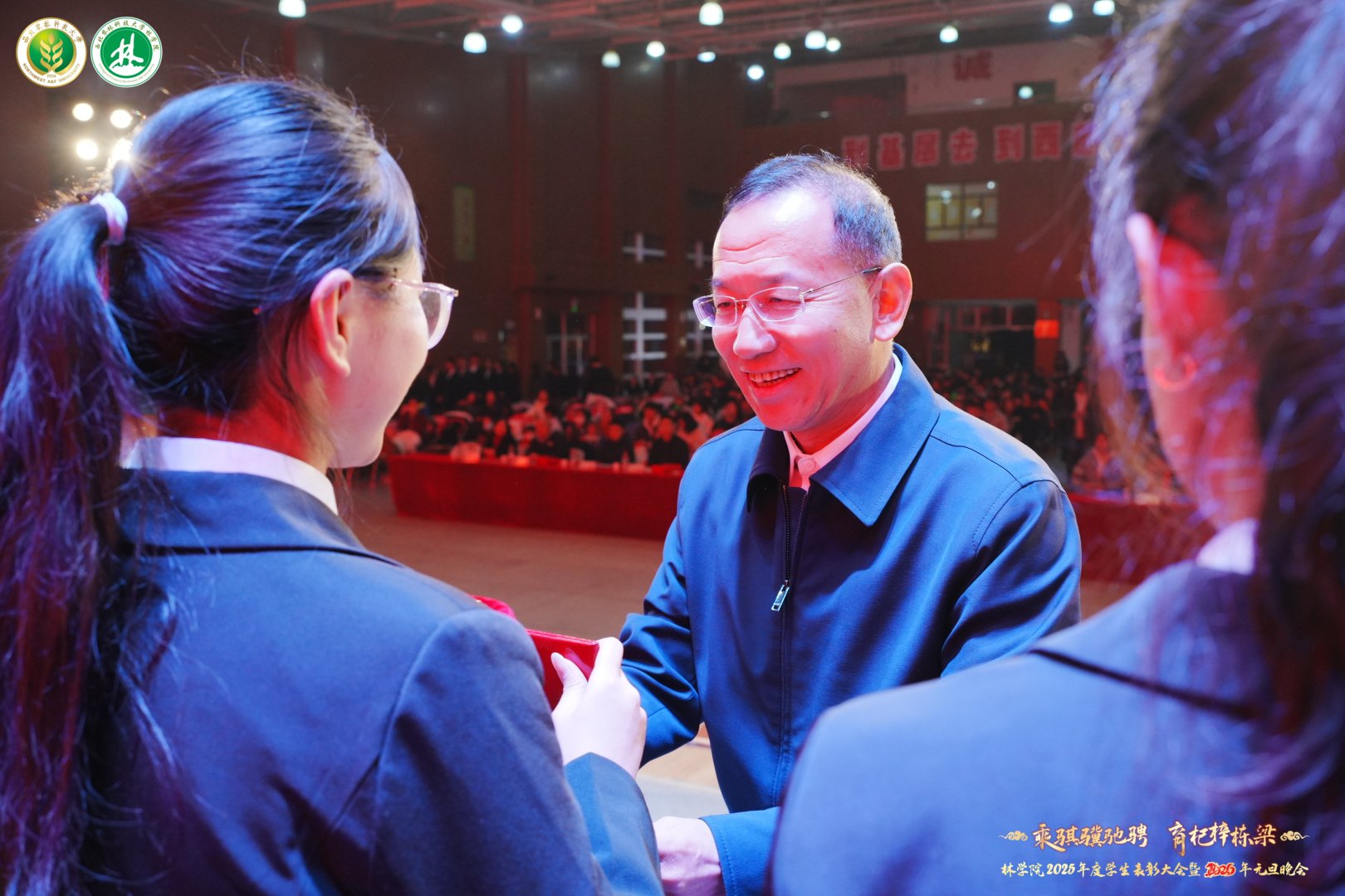 院长王利兵为“百名校园之星”“少数民族优秀学生”获奖学生代表颁奖